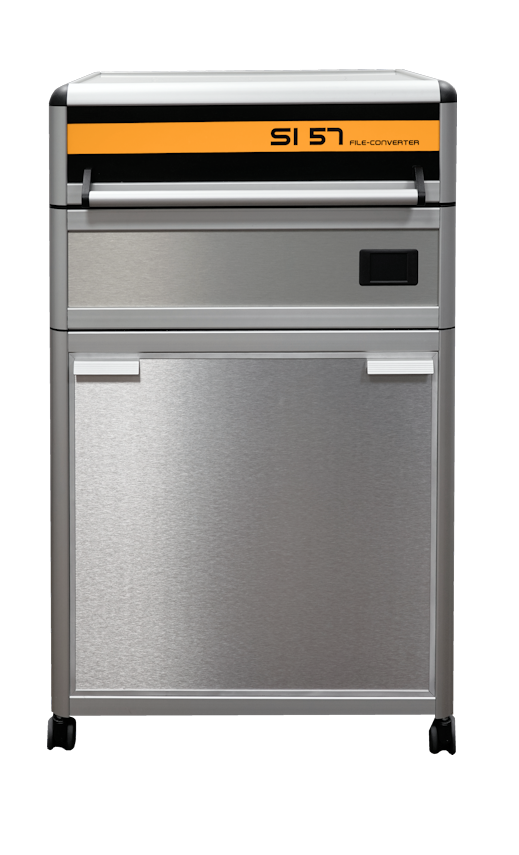 Der SI 57 FILE CONVERTER kann bis zu 7200 Bilder pro Stunde auf einen Mikrofilm schreiben. Für kleinere Vorlagen wie Bibliothekskarten, Schecks usw. ist eine optional erhältliche Nesting-Software verfügbar, um mehrere Bilder in ein Frame zu packen und dadurch die Durchsatzrate zu erhöhen.
